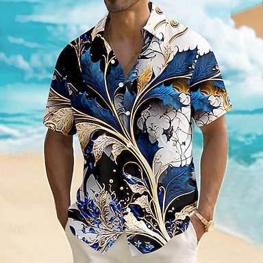 Per uomo camicia di lino Camicia estiva Maglietta informale Camicia da spiaggia Camicia hawaiana Fiore / Piante Da mare Hawaiano Blu Manica corta Bavero Primavera estate Abbigliamento Stampa
