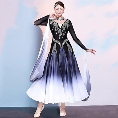 abito da ballo da sala per allenamento da donna, costumi da danza moderna, abiti standard da valzer a maniche lunghe