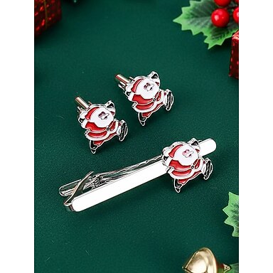 Set di gemelli e fermacravatta natalizi da uomo a forma di Babbo Natale: materiale in lega, design festoso per feste e occasioni formali