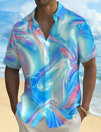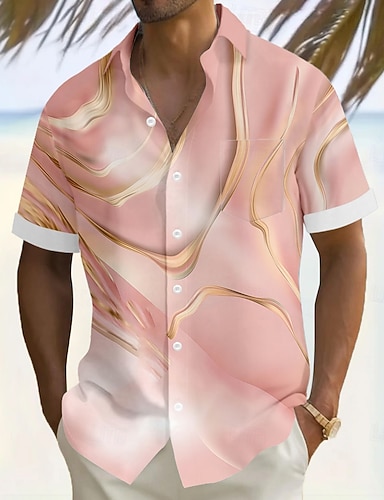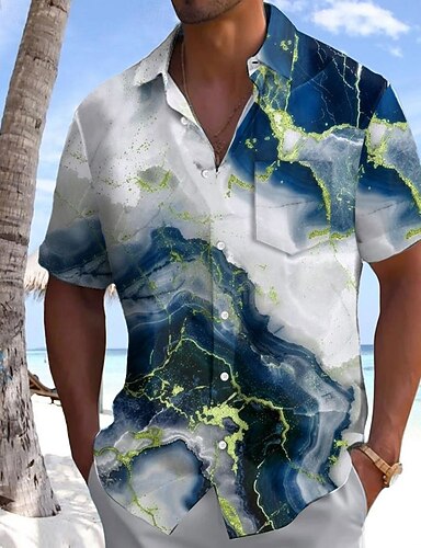 Per uomo Geometrico Marmo Arte liquida astratta Camicia Camicia Estiva Camicia con Bottoni Manica Corta Moda Casual Vacanza Ferie Abbigliamento casual alla moda Estate Collo ripiegato Stampa 3D Una