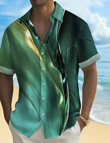 Per uomo Geometrico Onde Arte astratta Camicia Camicia Estiva Camicia con Bottoni Manica Corta Moda Casual Vacanza Ferie Abbigliamento casual alla moda Estate Collo ripiegato Stampa 3D Una tasca