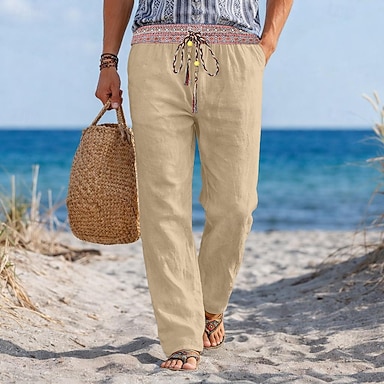 Per uomo Pantaloni di Lino Pantaloni Pantaloni Estivi Pantaloni Larghi Pantaloni da Spiaggia Coulisse Elastico in vita Stampato Etnico Comodità Traspirante Lunghezza intera Quotidiano All'aperto