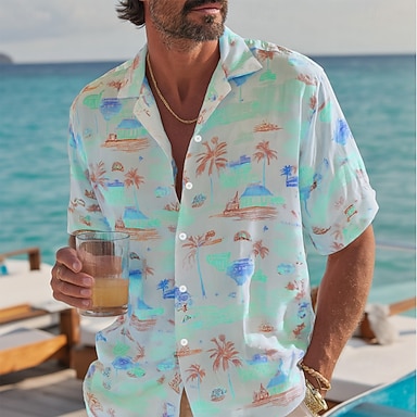 Per uomo Albero di Cocco Palma di Cocco Piante Tropicali Camicia Camicia con colletto cubano Camicia hawaiana estiva Manica Corta Hawaiano Vacanza Ferie Abbigliamento mare Estate Primavera Camicia