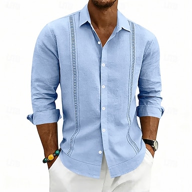 Per uomo Camicia Maglietta informale Camicia estiva Bianco Manica lunga Liscio Bavero Giornaliero Da mare Abbigliamento Di tendenza Informale Comodo
