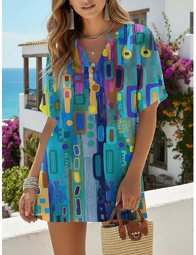 Per donna Camicia Stampato Floreale Grafico Elegante Vintage Casual Manica Corta Mezza Manica Scollo a V Top Regolari Casuale Quotidiano Ferie Blu Rosa Verde Cachi Estate Primavera