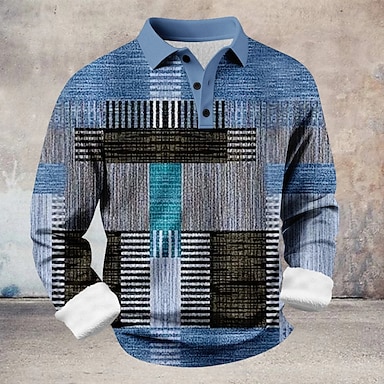 Per uomo Plaid Polo con zip Manica Lunga Magliette polo Colletto alla coreana Casual Scuola Athleisure Ferie Abbigliamento quotidiano Stampa 3D Polo con cerniera a un quarto Primavera Autunno
