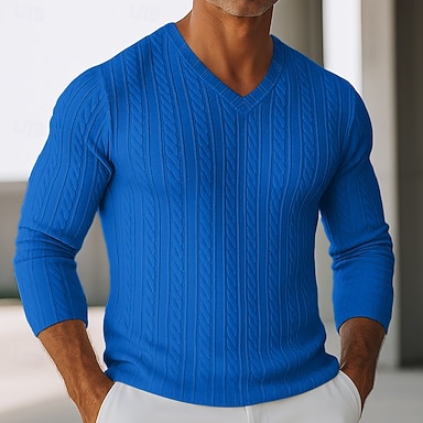 Per uomo T-shirt da uomo in maglia a costine con scollo a V Maglietta a Maglia a Coste Maglietta Manica Lunga Scollo a V Estate Primavera Autunno Semplice Jacquard Moderno Casual Confortevole Bottoni
