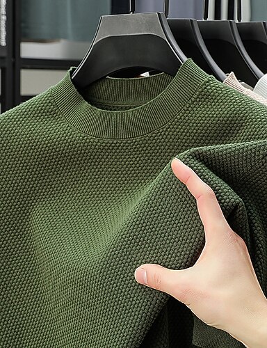 Per uomo Camicia a Maniche Corte Maglietta a Maglia Manica Corta Girocollo Estate Tinta unica Testurizzato Moda Designer Casual Base Casuale Quotidiano All'aperto Esercito verde Nero Bianco Maglietta
