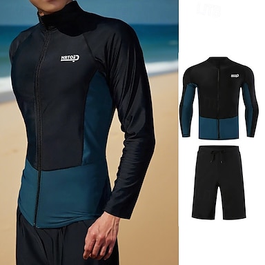 Per uomo Rash Guard in 2 pezzi Maglietta da surf Pantaloncini da bagno Color-blocking Protezione Solare UV Asciugatura Rapida Manica Lunga Costume da Bagno Spiaggia Sport Acquatici Nuoto Primavera