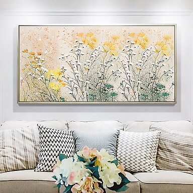 pittura a olio fatta a mano su tela decorazione di arte della parete pittura astratta colorata di piante e fiori pittura minimalista originale per la decorazione domestica con cornice allungata /