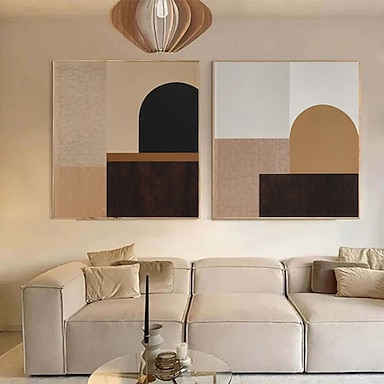 pittura astratta moderna, set da 2 pezzi, pittura geometrica, pittura grafica moderna, pittura nera beige marrone di metà secolo, arte boho