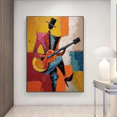 Dipinto ad olio fatto a mano su tela, decorazione murale moderna astratta raffigurante un chitarrista, ideale per la casa, il pub o la caffetteria. Disponibile con telaio teso, da appendere o