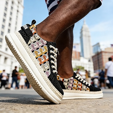 scarpe da ginnastica casual da uomo con fantasia multicolore: scarpe in tela traspirante, con lacci, leggere, adatte all'uso quotidiano, per i viaggi e per lo stile casual urbano