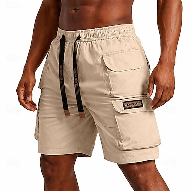 Per uomo Pantaloncini modello cargo Pantaloncini Pantaloncini estivi A cordoncino Vita elastica Multi tasca Liscio Comfort Indossabile Lunghezza del ginocchio Esterno Sport Giornaliero Di tendenza