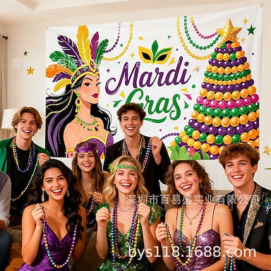 striscione per sfondo festa di martedì grasso, grande sfondo maschera in tessuto viola verde oro per cabina fotografica, decorazioni murali per la sfilata del martedì grasso, articoli per feste di