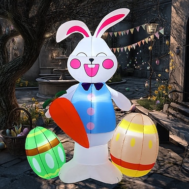 Decorazione gonfiabile pasquale con luci a led da 1,8 m/6 piedi, coniglietto, uova di Pasqua, carote, cortile interno ed esterno, giardino, prato, atmosfera per feste, luci decorative, oggetti di scena