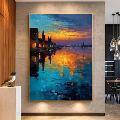 dipinto a olio fatto a mano su tela decorazione da parete impressione paesaggio città europea vista porto soggiorno ingresso decorazione arredamento casa dipinto arrotolato senza cornice non teso