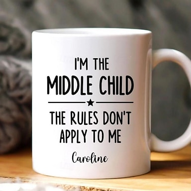 Tazza regalo personalizzata per figlio di mezzo, tazza da caffè in ceramica con nome personalizzato, chi fa le regole, 11/15 oz, tazze da caffè bianche, compleanno, Natale, famiglia, umorismo