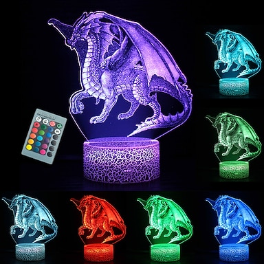dinosauro giocattoli 16 colori 3d lampada da scrivania illusione con luce notturna telecomandata per regali per bambini decorazioni da comodino camera da letto