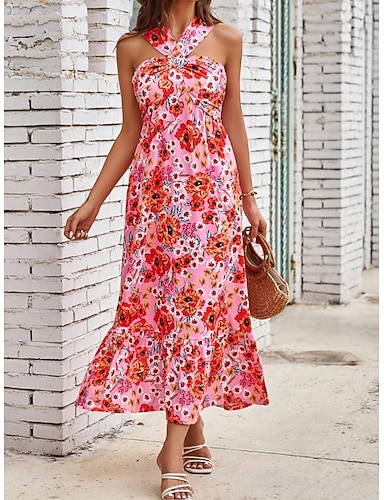 Linea ad A Asimmetrico Lunghezza alla caviglia Abiti da Cocktail Abito da Sera Da principessa Abito formale Elegante Vintage Senza Maniche Girocollo Matrimonio Formale Nylon con Stampa floreale Tasca
