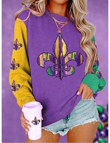 Per donna Felpa Pullover Stampato Grafico Classico Casual Manica Lunga Girocollo Top Regolari Abbigliamento da sera Abiti da festa Marrone scuro Nero Bianco Giallo Viola Primavera Autunno