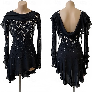 Abito da pattinaggio artistico Per donna Ragazze Pattinaggio sul ghiaccio Vestito Nero Patchwork Schiena aperta Rete Alta elasticità Allenamento Competizione Vestiti da pattinaggio sul ghiaccio
