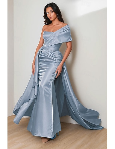 Abito da ballo Linea ad A Lunghezza al pavimento Abito da Sera Elegante Stile Celebrità Tappeto rosso Senza Maniche Monospalla Festa in giardino Matrimonio Raso con Pieghe