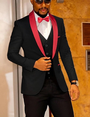 Uomo Abiti da lavoro Casuale Feste Nero Borgogna Primavera, Autunno, Inverno, Estate Tuta Bavero sciallato Formale Tinta unita Vestibilità standard 2 pezzi Monopetto a un bottone