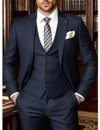 Uomo Smoking Abiti da festa Casuale Affari Nero Borgogna Primavera, Autunno, Inverno, Estate Tuta Bavero classico Quotidiano Casual Tinta unita Vestibilità standard 3 pezzi Monopetto Due Bottoni