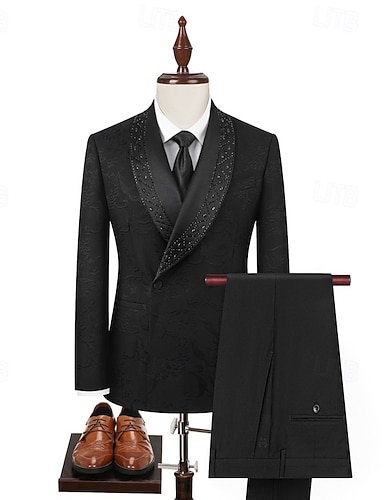 Completi da matrimonio da uomo colletto a scialle nero rosa moda quotidiana unito tailored fit set da 2 pezzi monopetto un bottone