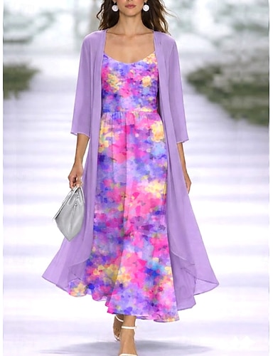 Linea ad A Corto Mini Abito da Ballo Abito da invitata a nozze Abiti per invitati a matrimoni Vintage Quotidiano Senza Maniche Senza Spalle Balli di fine anno Matrimonio con Stampa floreale