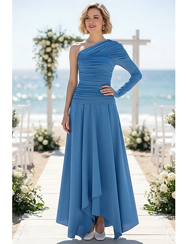 Linea ad A Asimmetrico Lunghezza alla caviglia Abito da invitata a nozze Abiti per invitati a matrimoni Elegante Quotidiano Senza Maniche Monospalla Matrimonio Formale con Pieghe Arricciato