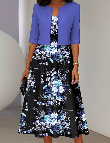 Linea ad A Abito Lunghezza alla caviglia Vestito da Festa Abito da Cocktail Abito da cerimonia per signora Mezza Manica Scollo Tondo Elegante Vintage Formale Ospite di nozze Ferie Chiffon con Stampa