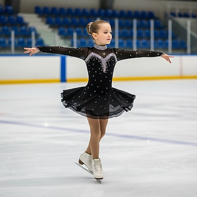 Abito da pattinaggio artistico Per donna Pattinaggio sul ghiaccio Vestito Nero Patchwork Schiena aperta Alta elasticità Allenamento Competizione Vestiti da pattinaggio sul ghiaccio Classico Cristallo