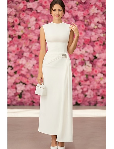 Tubino Colonna Lunghezza alla caviglia Vestito da Festa Abito da Cocktail Abiti per invitati a matrimoni Elegante Piccoli Abiti Bianchi Senza Maniche Girocollo Formale Laurea Tessuto Elasticizzato con
