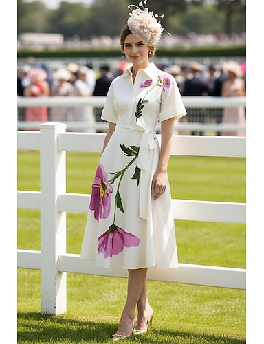 Linea ad A Abito Lunghezza Tè Abito da Cocktail Abito da invitata a nozze Abito da cerimonia per signora Manica Corta Mezza Manica Girocollo Elegante Casual Formale Derby del Kentucky Semi-Formale