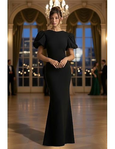 Tubino Colonna Lunghezza al pavimento Abito da invitata a nozze Abito Formale Abito da sera Abito da cerimonia per signora Manica Lunga Girocollo Elegante Vintage Raso con Fiocco/Fiocchi