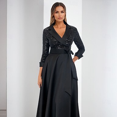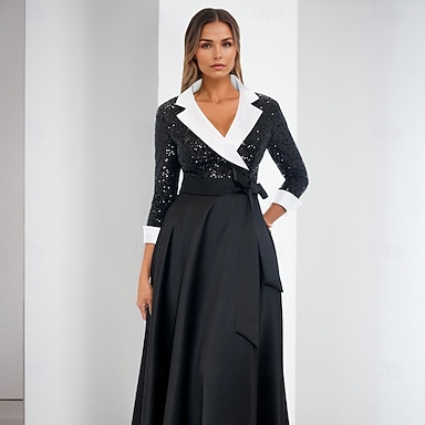Per donna Abito da smoking Sirena Tromba Matrimonio Formale Ospite di nozze Strass Elegante Scintillante Manica Lunga Lunghezza alla caviglia Colletto a Camicia Revers dentellati