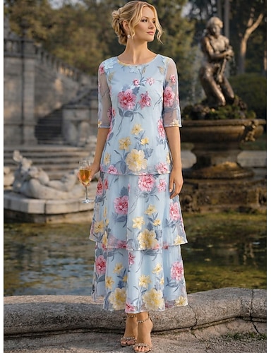 Linea ad A Abito Lunghezza alla caviglia Vestito da Festa Abito da Cocktail Abito da cerimonia per signora Mezza Manica Scollo Tondo Elegante Vintage Formale Ospite di nozze Ferie Chiffon con Stampa