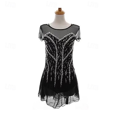 Vestito da pattinaggio artistico Per donna Da ragazza Pattinaggio sul ghiaccio Vestiti Nero Collage Nappa Retato Elastene Elasticizzato Addestramento Da allenamento Professionale Vestiti da