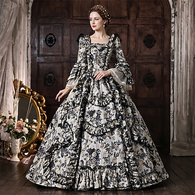 Rococò Barocco Abito da Ballo Lunghezza al pavimento Vestito Abito da Ballo Maniche corte Principessa Sposa Pizzo Floreale Abito da ballo Collo quadrato Costume Per donna Reale Halloween Carnevale