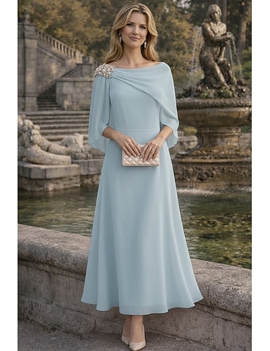 Linea ad A Lunghezza alla caviglia Abito da invitata a nozze Abito Formale Abito da sera Abito da cerimonia per signora Senza Maniche Mezza Manica Scollo a Barca Elegante Vintage Formale Chiffon con