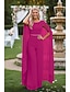 Due Pezzi Linea ad A Lunghezza Tè Abito da invitata a nozze Abito da cerimonia per signora Manica Corta Scollo a V Elegante Taglie Forti Ospite di nozze Ricevimento di matrimonio Chiffon Con Stola