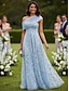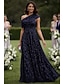 Abito da ballo Linea ad A Lunghezza al pavimento Abito da cerimonia per signora Senza Maniche Monospalla Elegante Formale Ospite di nozze Serata Formale Tulle con Pieghe Arricciato Ricamo