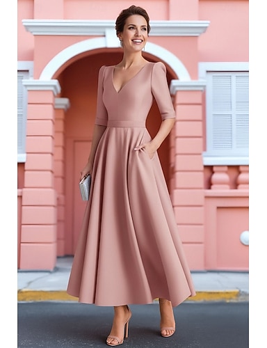 Linea ad A Lunghezza alla caviglia Vestito da Festa Abito da Cocktail Abito da invitata a nozze Abito da cerimonia per signora Manica 3/4 Scollo a V Scollo Tondo Elegante Formale Ospite di nozze