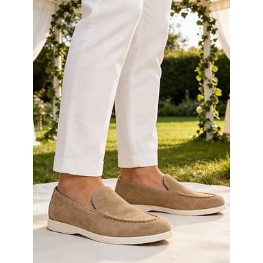 scarpe casual da uomo beige slip-on, scarpe comode ed eleganti per tutti i giorni, perfette per viaggi, ufficio e uscite informali, versatili calzature slip-on per uomo e matrimoni