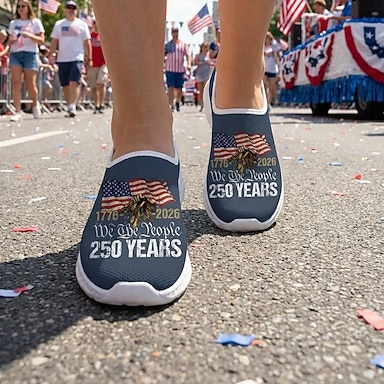 Stati Uniti 250° Anniversario Scarpe Slip-On Ampie Stampate da Donna USA - Scarpe da Passeggio Leggere Stile Urbana Casual Patriottico per Moda da Strada Festival Viaggi e Uso Quotidiano