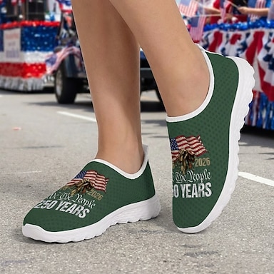 Sneakers slip-on patriottiche da donna: comode e traspiranti scarpe verdi in mesh con motivo a bandiera americana per sfilate, 4 luglio, 250° anniversario degli Stati Uniti e celebrazioni nazionali