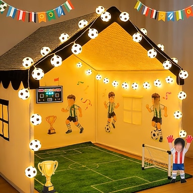 Luci a stringa per calcio mondiale, decorazioni a tema calcio, luci da 3 m e 20 LED, luci per interni, alimentate a batteria, regali per feste a tema sportivo, decorazioni per Pasqua, San Valentino