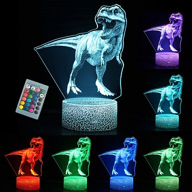 dinosauro giocattoli 16 colori 3d lampada da scrivania illusione con luce notturna telecomandata per regali per bambini decorazioni da comodino camera da letto